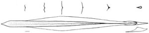 Figure. Ventral view of gladius F. knipovitchi with cross-sections. Drawings from Filippova, 1972.