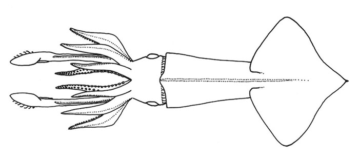 Bolstad, K.S. 2008. Two new species and a review of the squid genus Onychoteuthis Lichtenstein, 1818 (Oegopsida: Onychoteuthidae) from the Pacific Ocean. Bulletin of Marine Science, 83: 481–529.