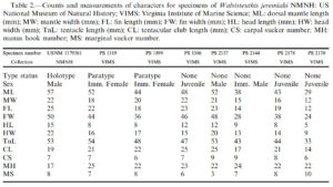 Table of counts and measurements (from Vecchione, et al., 2015).